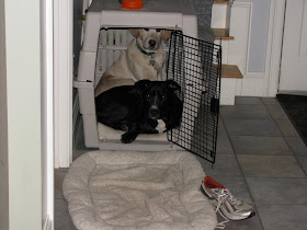 All goodies, food, treats, toys and bones are offered to the dog by tossing them into the crate.  Once your dog is readily going into the crate to retrieve good things, you can begin the process of closing the door.  Again, this is only done while you are still in the home.  Each training session should end on calm note with the dog acting calmly in the crate.  Very the training time you have your dog stay in the crate.  Some sessions are longer and some are short.  The key is for the dog to learn that he only comes out when his behavior is calm, not barking and whining.