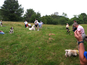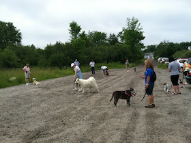 Thank you to everyone who attended our Canine Body Language Seminar held at Poetic Gold Farm in Falmouth this past Sunday!  I believe, from all the positive feedback I have received, we accomplished our goal of helping everyone see that our dogs really do speak with their body movements.  When we take time to observe our dogs stance, their weight distribution, what their ears, eyes, tail, mouth, brows and tongue,  are doing as well as their over all body firmness, we can learn a great deal about our dogs emotional state.  With just a bit of practice we can understand what our dog is feeling given the situation they are in and how to help them if they are fearful or stressed.  As you can see in the above photo, Mia was not comfortable greeting me for the first time facing me, instead, each time turned and gave me her back, with ears down and back, tongue flicking up and out.  She clearly has a bit of hesitation when greeting someone new, but she did quickly warm up and roll on the ground in a relaxed goofy manner.