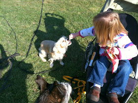 In the photo to the right, my Outdoor Adventure Class is open to dog friendly dogs. Dogs that have good emotional control, dogs that can sit and watch a dog go by without demanding to get to it, and dogs that are not overly pushy. If your dog is demanding to say "hello" to every dog that goes by, think about why that behavior is developing and where it is being reinforced. I hope to see you and your dog in a training class, while on-leash and enjoying each other's calm company!
